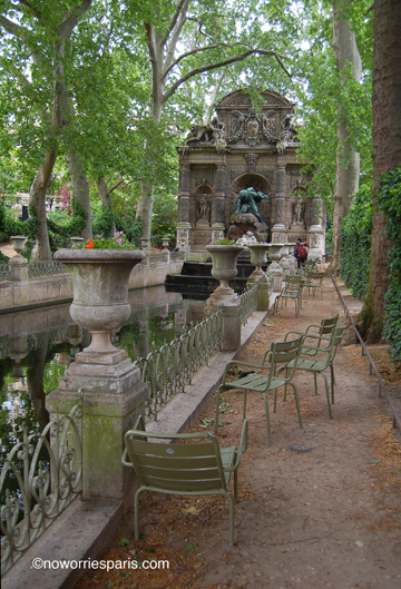 The shady quiet corner of the gardens. Some empty chairs today. Look behind the fountain and you will see another that’s quite different and not noticed by most passerbys.