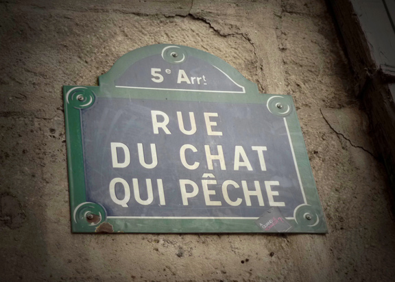 At 5 feet and 10 inches wide, Rue du Chat Qui Peche (street of the cat who’s fishing) built in 1540 is located in the 5th arrondissement running from Quai Saint-Michel to Rue de la Huchette. Complete directions in your No Worries Paris guidebook.