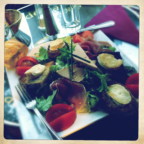 A few outtakes from my wanderings through Pere Lachaise and the Marais. Lingering longer than normal in the cafe to warm up. Salade St. Germain: Fois gras, proscuitto, warm goat cheese on toast, lettuce, tomato, cornichons, perfection.