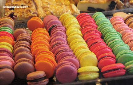 Pop one or two or three: Each and every day Ladurée bakeries sell fifteen thousand double-decker small biscuits, crisp on the outside, smooth and soft ganache-filled. Wow. Ingredients include ground almonds, eggs, sugar, coloring, flavoring and a pinch of je ne sais quoi. After baking, the yummies are set aside for two days to achieve the perfect balance of texture and flavor. Foodies have big decisions: How to choose among the chocolate, vanilla, raspberry, pistachio, salted butter caramel, black currant violet or special seasonal flavors like anise, chestnut, basil lime, orange blossom, rose white chocolate, bergamot and lily of the valley? The cost is less than two euros apiece.