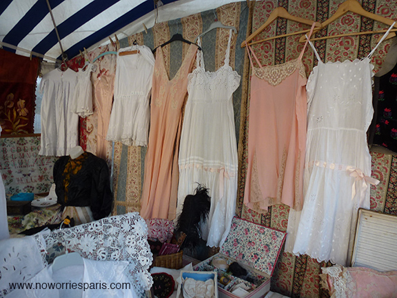 The small scale makes the Marche aux Puces de la Porte de Vanves a unique weekend shopping outing. The market occupies two avenues in the 14th arrondissement of Paris: av. Sangnier and BC. Georges Lafenestre. Open 7 to 2 p.m. It takes place every Saturday and Sunday of the year, holidays included. There are over 380 professional vendors hawking vintage clothing and furniture, fixtures, tableware, glassware and silverware, fabric, antique jewelry, cameras, phonographs and radios, books and old papers, coins, medals and militaria, paintings, drawings and engravings; photographs and postcards, curios, toys and folk art, religious objects, oriental and African arts. Whew! I’m a regular and it never disappoints.