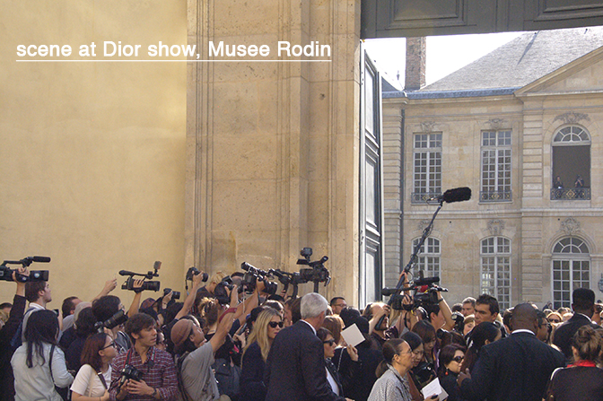 The day belonged to these two designers in Paris. Their runway shows for spring-summer 2014 were well received and well attended by buyers and customers from around the world. I was one of the last of the press corps to be admitted to the Miyake show where there was only room on the floor, a low approach to photography. Then again, Dior was so exclusive (the address 79 Varenne, the Rodin museum) was only shared with those who received invitations.