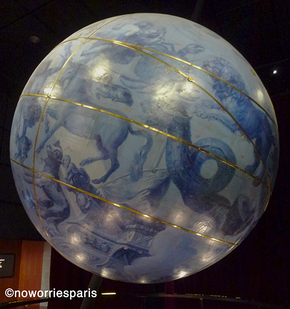 The globes pictured were designed in Paris by Venetian cosmographer Vincenzo Coronelli and represent the earth and the heavens. Exceptional in size, they have been part of the Biblioteque Nationale de France since the 18th century yet remained rarely shown until their permanent installation in 2006.