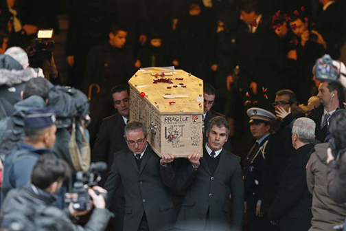 At Georges Wolinski’s funeral, his daughter Elsa said his ideals would live on.